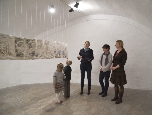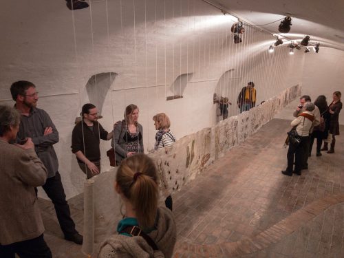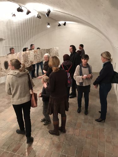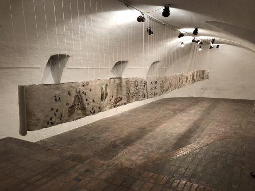 Ahogy az ún. apácamunkák sem kiállításra szánt darabok voltak, hanem elkötelezett ereklyetiszteletből fogant devóciós képek, amelyek szemlélése – és tegyük hozzá: készítése – képessé tette az imádkozót belső útjára összpontosítani, úgy Richter Sára e két hosszúkás formába öntött munkája sem igazán publikus alkotás. A most kiállított vászontekercs színe és visszája két hónapnyi befelé fordulás, konstans fogalmazás és átírás, megrajzolás és elvetés, önfeltáró számvetés eredménye. Az így létrejött lajstrom recto és verso oldala anyai szálra fűzött vallomások sora.